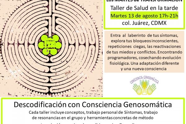 El taller de salud de este mes de agosto: martes 6, 9h-13h. Para trabajar nuestros síntomas, y aprender a sincronizar nuestras...