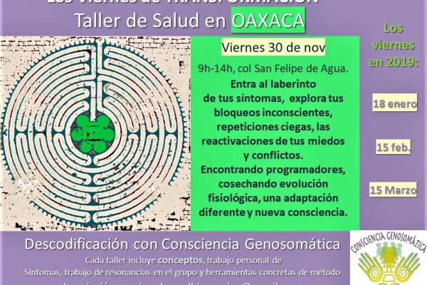 En Oaxaca, este viernes: un trabajo colectivo con los nuevos paradigmas de salud. Cuando hay consciencia, mi cuerpo se completa. Pasamos de los impactos emocionales bloqueados a la sensación humilde del “estar en presencia”. El síntoma descansa. El cuerpo renace en su fluir.