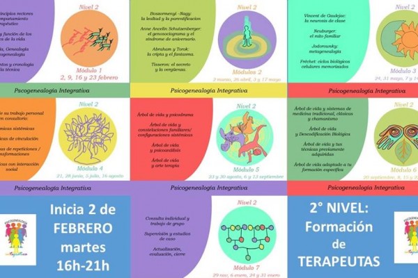 February, second level, Integrative Psychogenealogy Tuesday 16h-21h. Information: psicogenealogiaintegrativa@gmail.com