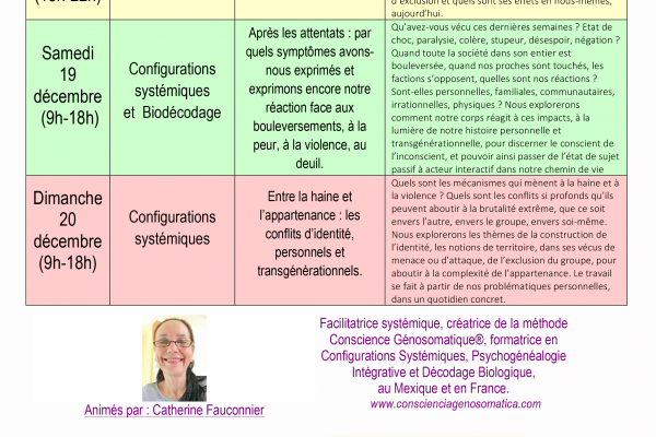 Del 18 al 20 diciembre en París, los cambios pueden comenzar un proceso de conciencia personal. Bienvenido a talleres temáticos.